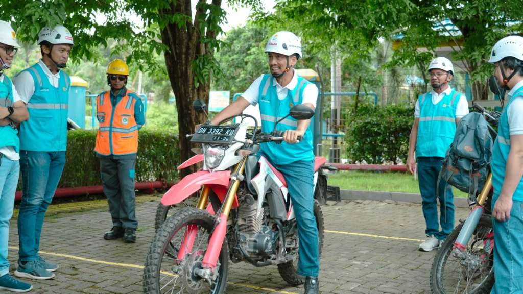 GM PLN NTT mencoba performa salah satu kendaraan operasional roda dua yang disiagakan untuk mendukung pelayanan kepada masyarakat. Foto : tim PLN