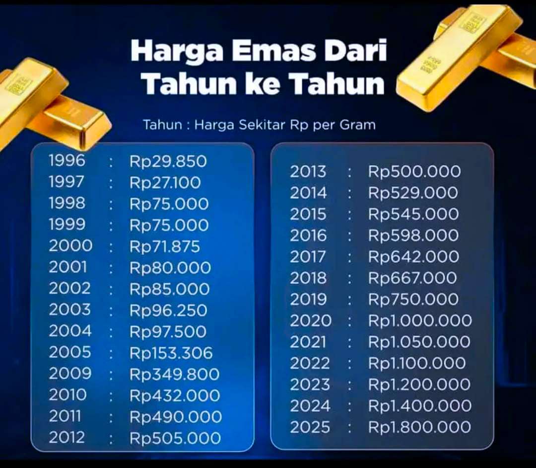 Harga emas dari tahun ke tahun. Foto : Instagram