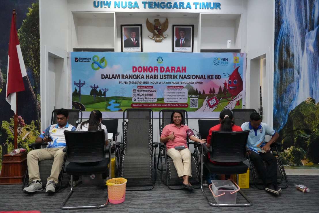 Kupang | PLN (Persero) Unit Induk Wilayah Nusa Tenggara Timur (PLN UIW NTT) tidak hanya menerangi rumah, tetapi juga hati. Berkolaborasi dengan Yayasan Baitul Maal (YBM) PLN dan Palang Merah Indonesia Provinsi Nusa Tenggara Timur (PMI NTT), PLN UIW NTT sukses menghelat aksi sosial donor darah bertajuk “Setetes Darah, Sejuta Harapan” di Aula Flobamora, Kantor PLN UIW NTT, pada Rabu, 15 Oktober 2025.