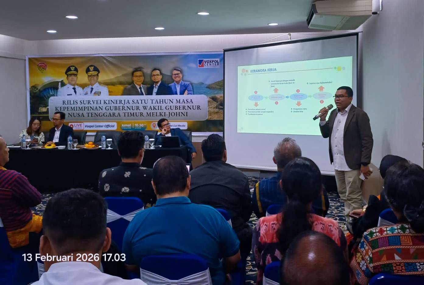 Hal ini dibeberkan Direktur Eksekutif Voxpol Center Research and Consulting, Pangi Syarwi Chaniago, dalam sesi diskusi publik survei kepuasan masyarakat atas kinerja satu tahun Gubernur NTT, Emanuel Melki Laka Lena dan Wakil Gubernur NTT, Johanis Asadoma, Jumat malam, 13 Februari 2026.