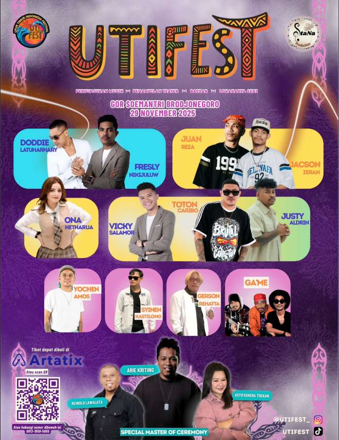 Jangan lewatkan kesempatan berharga menyaksikan langsung kemegahan budaya, energi yang membara, dan semangat persatuan yang dibawa oleh UTIFEST dalam konser akbar “Timur Bersinar, Nusantara Bergema” yang akan diselenggarakan pada Sabtu, 29 November 2025 bertempat di GOR Sumantri Brojonegoro Kuningan Jakarta. (*)