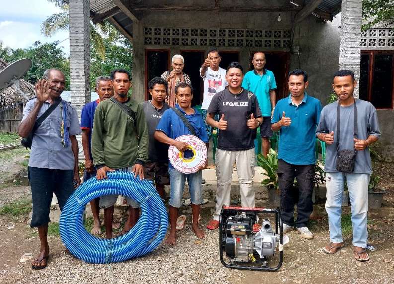 Siang itu, melalui kerabatnya yang hadir langsung, satu unit pompa diesel tipe Super Fighter beserta selang pengisap dan selang pembuangan sepanjang lebih dari 60 meter resmi diserahkan ke tangan Justus.