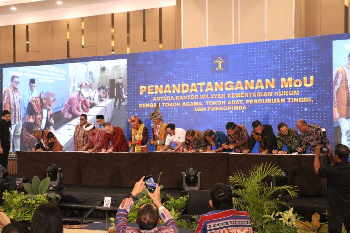 Pemandangan Mou antara Kanwil Kemhum NTT dengan tokoh agama, tokoh adat, perguruan tinggi, dan forkompinda. Foto : Ryan/Kemhum NTT